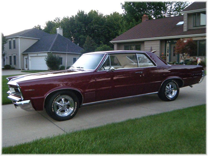 389 tripower, 200-4r transmission, 12 bolt 331 rear diff. and dics brakes. Ernie's 65 Lemans is a true gem! More to come!